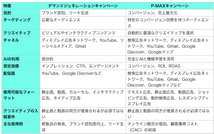 P-MAXキャンペーンとデマンドジェネレーションキャンペーンの比較