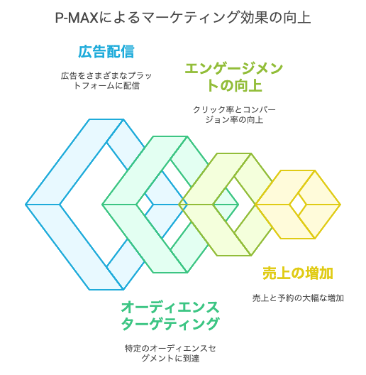 また、ある旅行会社ではP-MAXを利用して、特定の旅行パッケージの販売促進を行ったケースがあります。この旅行会社は、P-MAXを通じて、検索広告、ディスプレイ広告、YouTube広告を組み合わせて配信し、ターゲットオーディエンスにリーチしました。その結果、広告のコンバージョン率が40%向上し、予約数も大幅に増加しました。このように、P-MAXは特定のニーズに応じた広告配信を行うことで、効果的なマーケティングを実現します。