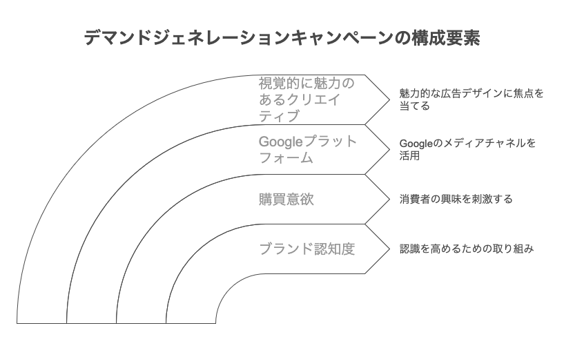 デマンドジェネレーションキャンペーンは、特にブランド認知度を高め、購入意欲を促進することを目的とした広告キャンペーンです。このキャンペーン・タイプは、YouTube、Discover、GmailといったGoogle独自の媒体を活用し、視覚的に魅力のあるクリエイティブで展開します。