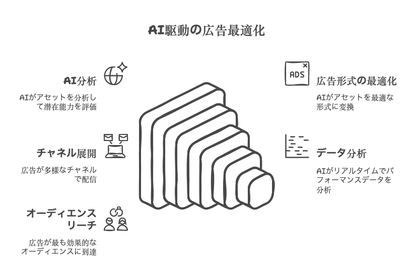 P-MAX(Performance Max)は、Google広告が提供する新しいキャンペーンタイプであり、広告主が持つクリエイティブアセットをAIが分析し、最高のパフォーマンスを発揮できる最適な形式で広告を配信します。このキャンペーンは、検索エンジン、YouTube、ディスプレイ広告、Gmailなど、多様なチャネルで広告を展開することが可能です。特に、AIの力を借りて、リアルタイムにデータを分析し、最も効果的なオーディエンスにリーチする能力が強調されています。